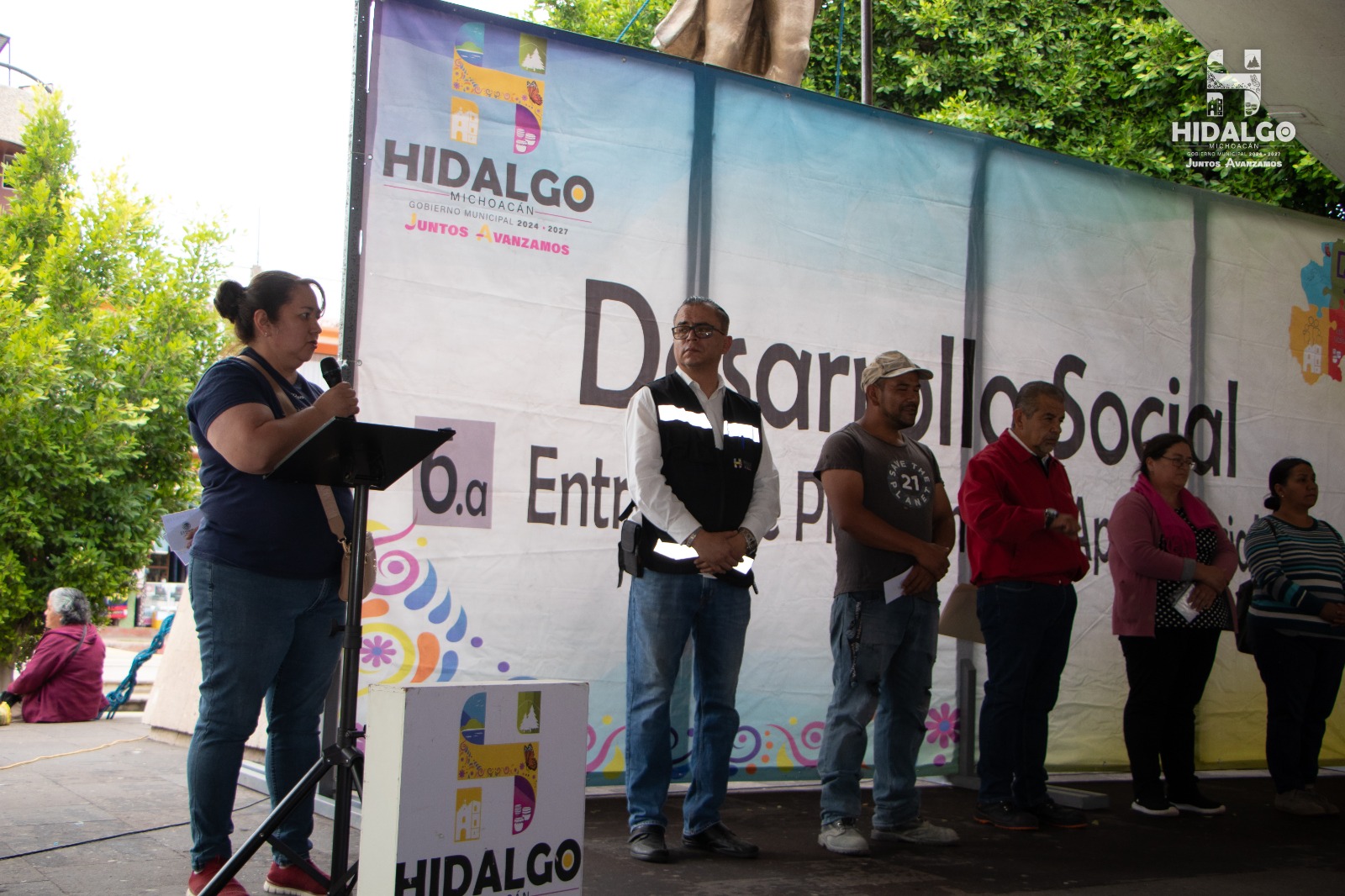 Ciudad Hidalgo, Michoacán., a 28 de mayo de 2025.- El Director de Desarrollo Social, en representación personal de la Presidenta Municipal de Hidalgo, Jeovana Alcántar, realizó la Sexta Entrega de Apoyos Sociales, beneficiando a más de 122 familias de la Cabecera Municipal, así como de diferentes comunidades del municipio de Hidalgo, el evento se realizó en el Jardín Principal.