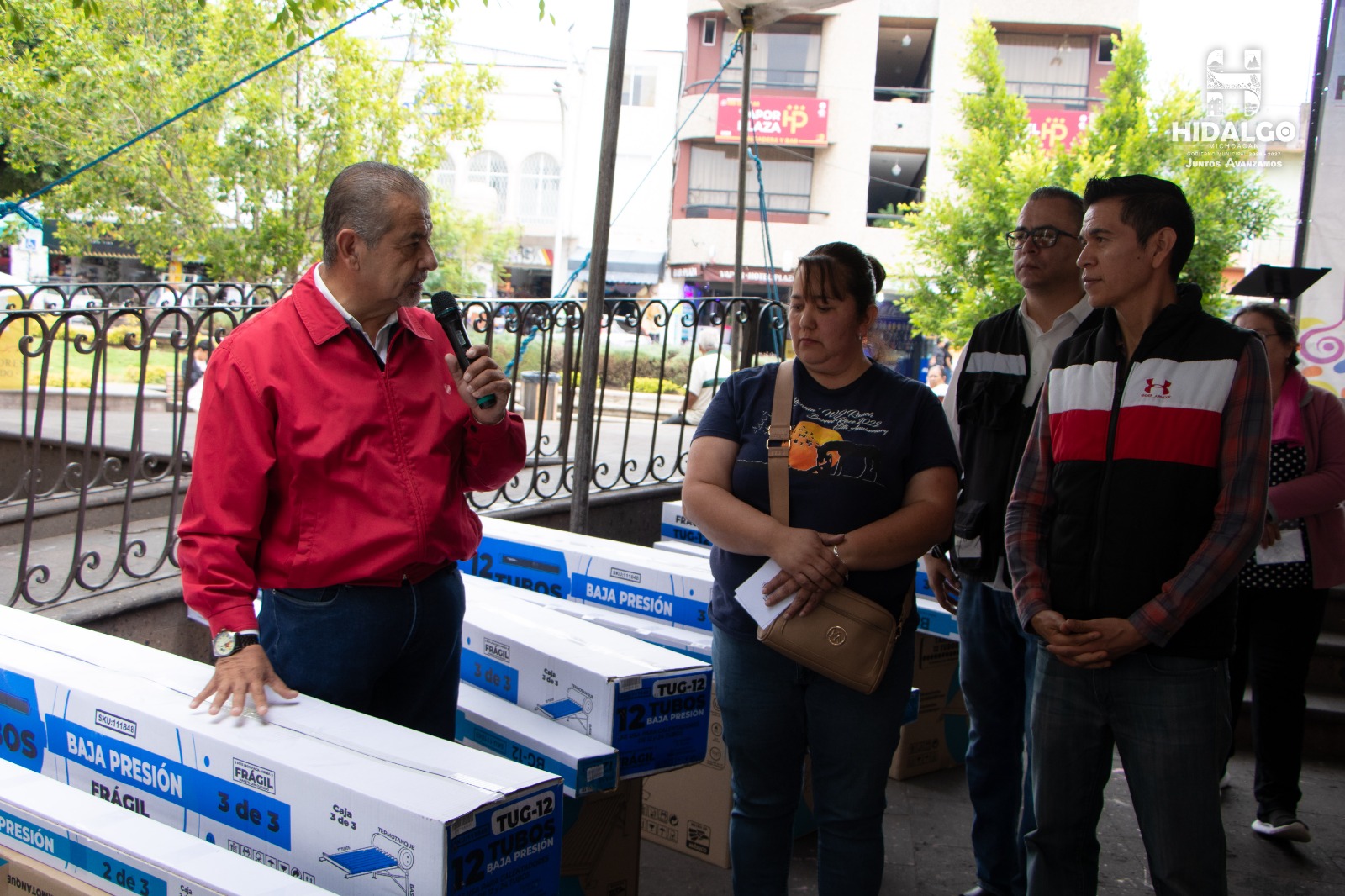 Mencionó que a nueve meses de este gobierno, se lleva a cabo la sexta entrega de apoyos sociales, con el objetivo de beneficiar a las familias Ciudad Hidalguenses, con productos a un bajo costo, que vengan a mejorar el nivel de vida de sus familias, en esta ocasión se entregaron 37 calentadores solares, 69 tinacos de 1,100 litros, 125 plastijejas de 3 metros por un metro, 5 pacas de láminas de cartón, 3 juegos de baños, 1 paquete de carretilla, 8 bombas de ½”, 3 estufas ecológicas, 1 parrilla y 105 metros de malla ciclónica.