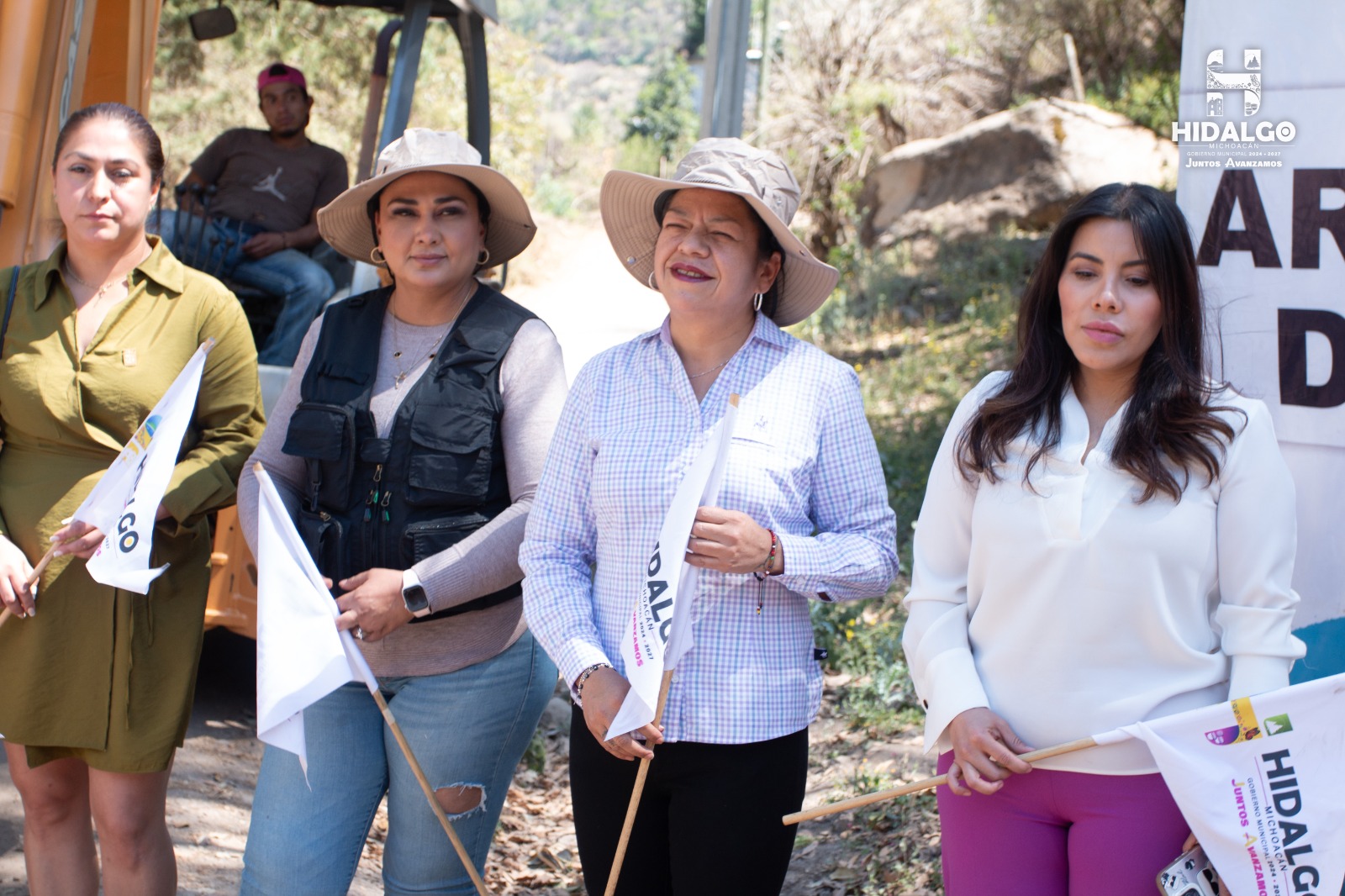 Ciudad Hidalgo, Michoacán., a 8 de marzo de 2025.- La Presidenta Municipal de Hidalgo, Jeovana Alcántar, acompañada de Regidoras y funcionarios municipales, en gira de trabajo, dio el arranque a los trabajos de la Segunda Etapa de la pavimentación del camino de acceso a la localidad de Caleras perteneciente el Municipio de Hidalgo, beneficiando así a los habitantes del lugar que podrán transitar con mayor seguridad y trasladar productos para su comercialización.