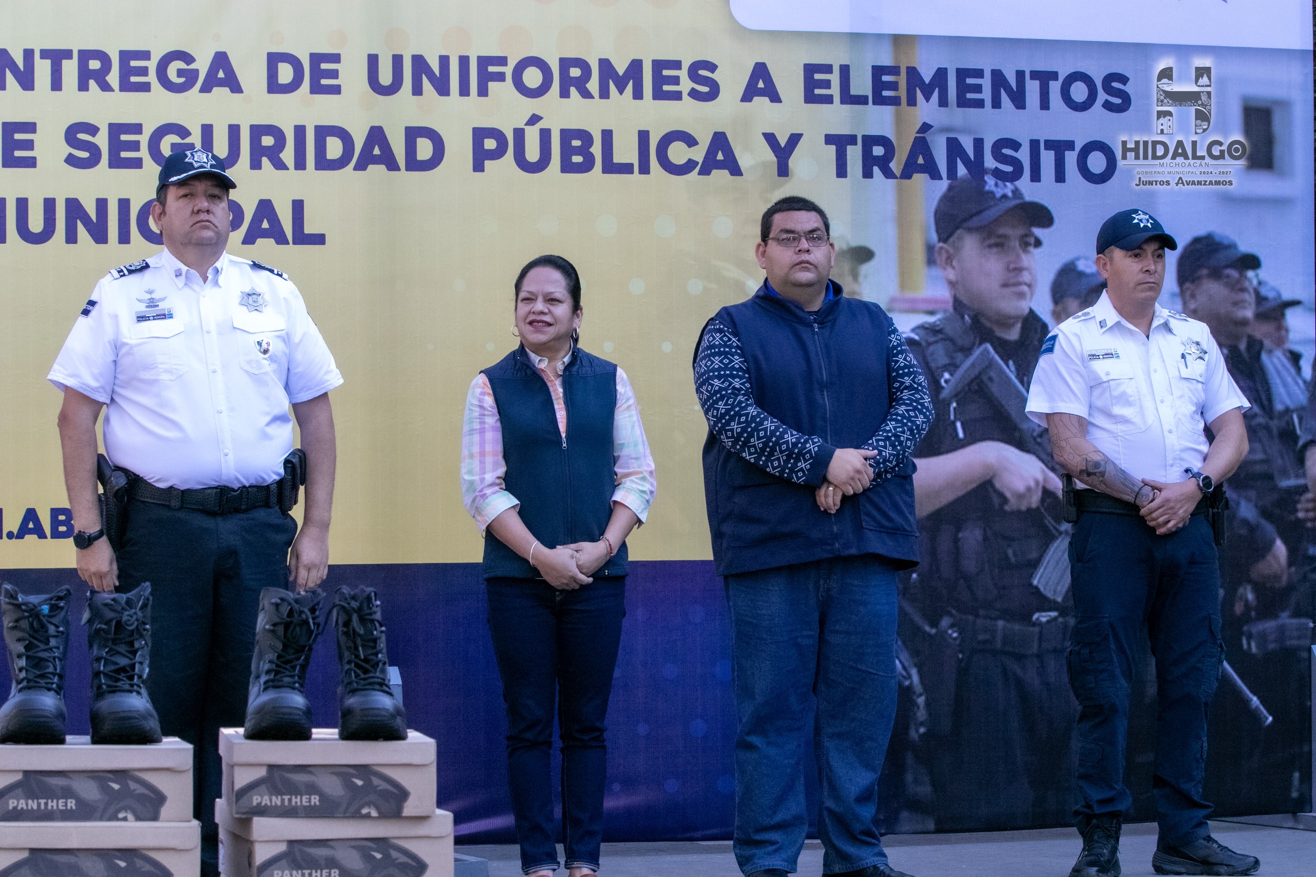 Ciudad Hidalgo, Michoacán., a 1 de abril de 2025.- Desde el inicio de nuestra administración, tenemos el claro compromiso de trabajo y coordinación para ofrecer una mayor seguridad y tranquilidad a los habitantes de nuestro municipio, lo anterior lo expresó la Presidenta Municipal de Hidalgo, Jeovana Alcántar, quien acompañada del Director de Seguridad Publica, Capitán, Leobardo Guevara de Ita, del Secretario del Ayuntamiento y el Síndico Municipal, hizo la entrega de uniformes a los Elementos de Seguridad Pública y Tránsito Municipal, a fin de que realicen su trabajo con mayor profesionalismo en beneficio de nuestra sociedad.