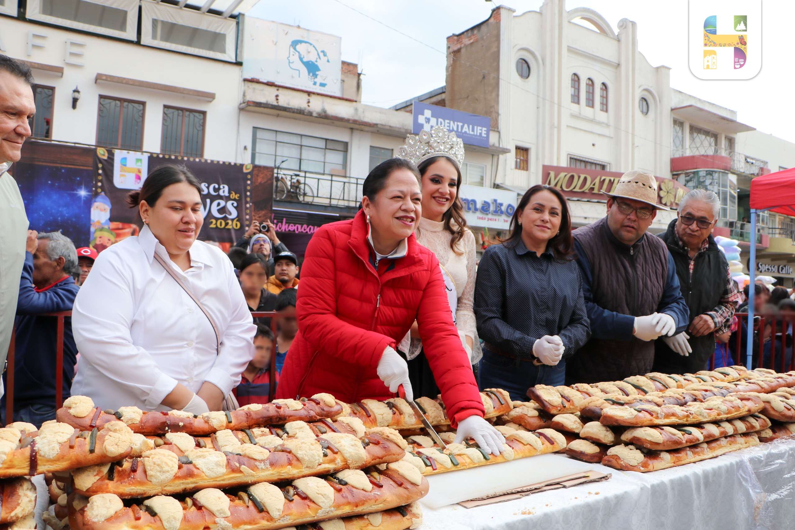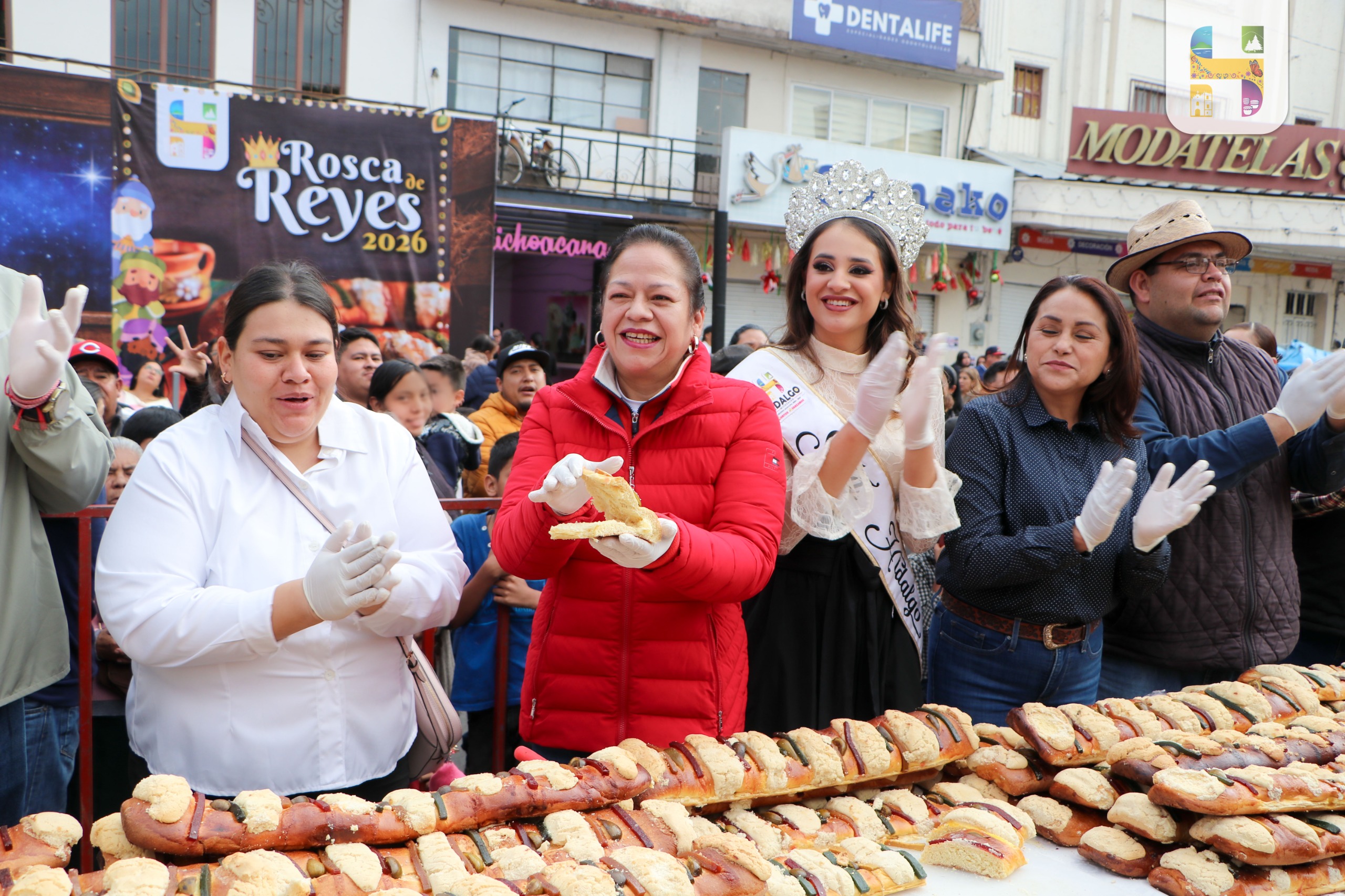 Ciudad Hidalgo, Michoacán., a 12 de enero de 2026.-Ante miles de familias Ciudad Hidalguenses, la Presidenta Municipal de Hidalgo, Jeovana Alcántar, acompañada de Regidores del Ayuntamiento y panaderos de la localidad partió y distribuyó la Monumental Rosca de Reyes 2026, evento lleno de tradición, sabor y convivencia familiar que se llevó a cabo en el Jardín Principal, donde más de 17 mil personas disfrutaron de una rebanada de Rosca de Reyes y un rico atole.