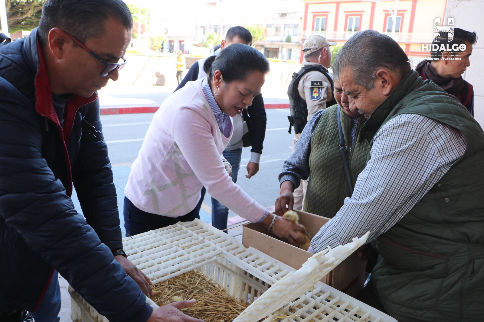 En esta ocasión fueron 100 paquetes de 10 pollitos saso doble propósito (8 hembras y 2 machos) de tres semanas ya vacunados, promoviendo la autosuficiencia alimentaria, beneficiando a familias tanto de la cabecera municipal como de las comunidades que previamente presentaron sus solicitudes y cubriendo el costo de 350 pesos por paquete, para que les fueran entregados en tiempo y forma.