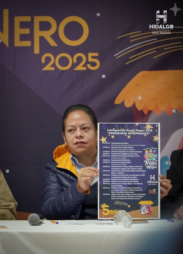 En esta rueda de prensa, se informó que con este evento se hace realidad, la magia y la ilusión de los niños de Ciudad Hidalgo, que serán visitados por Los Reyes Magos, iniciando con la celebración Eucarística Solemne en la Parroquia del Perpetuo Socorro a partir de las 16:30 horas, presidida por el Vicario Episcopal, Eduardo Navarro Noriega; a las 17:30 horas, aparición de los Reyes Magos; 17:30 horas, inician las actividades de animación en el Jardín Principal; 18:00 horas iniciará la Cabalgata en sus carruajes por las principales calles de la ciudad, iniciando en Calle Francisco I. Madero, doblar al sur por calle Niños Héroes, Mariano Jiménez, doblar a la derecha por Avenida Morelos Poniente y tomar calle Cuauhtémoc para llegar al Jardín, donde estará la Sagrada Familia (María y José con el niño Dios, a quien adorarán y entregarán regalos (Oro, Incienso y Mirra).