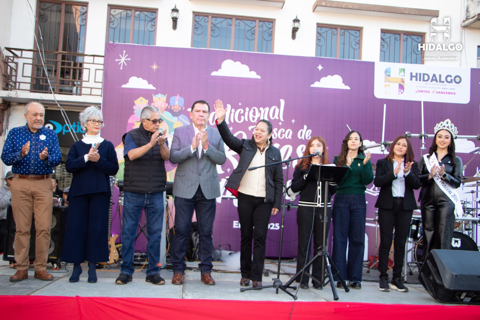 En un ambiente de fiesta y ante miles de Ciudad Hidalguenses, La Presidenta Municipal de Hidalgo, C. Jeovana Alcántar, acompañada de Regidores y funcionarios municipales, partió y compartió la monumental Rosca de Reyes con más de mil 500 metros lineales elaborada por panaderos de la localidad y que fue degustada por niños, jóvenes y adultos que se congregaron el Jardín Principal.