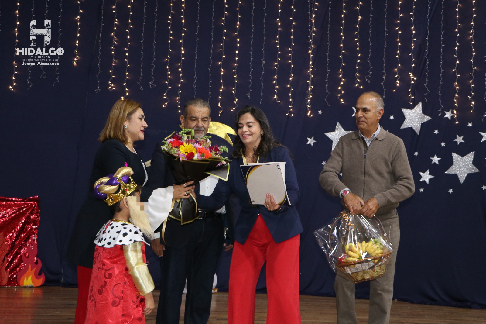 Ahí la institución, entregó reconocimientos a las maestras Claudia Elizabeth Díaz Colín, María Yanet Cornejo Yáñez y el C. Cesar Pérez Cortés, por su invaluable trayectoria llena de entrega y dedicación durante 30 años de servicio, aportando sus conocimientos y habilidades en beneficio de la educación de los niños. En la parte socio-cultural, se tuvo la participación de los niños y niñas con la ya tradicional pastorela, villancicos y bailes navideños.